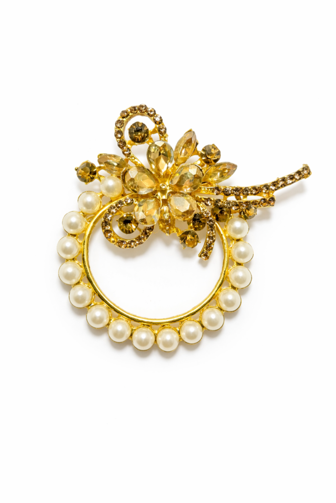 Elegant Pearl & Crystal Hijab Brooch Pin
