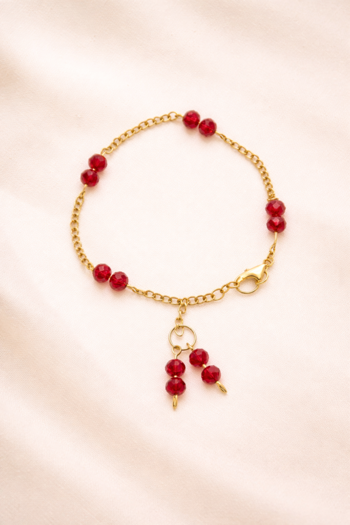 Ruby Crystal Charm Chain Bracelet
