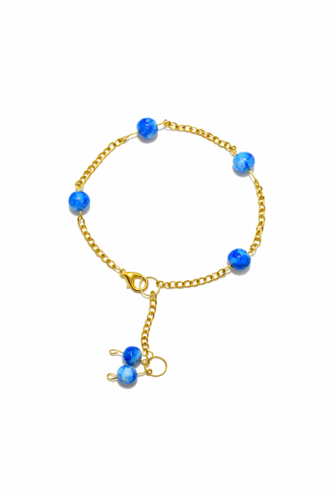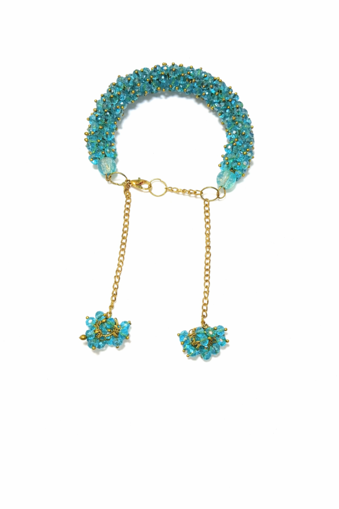 Blue Crystal Beaded Charm Chain Bracelet